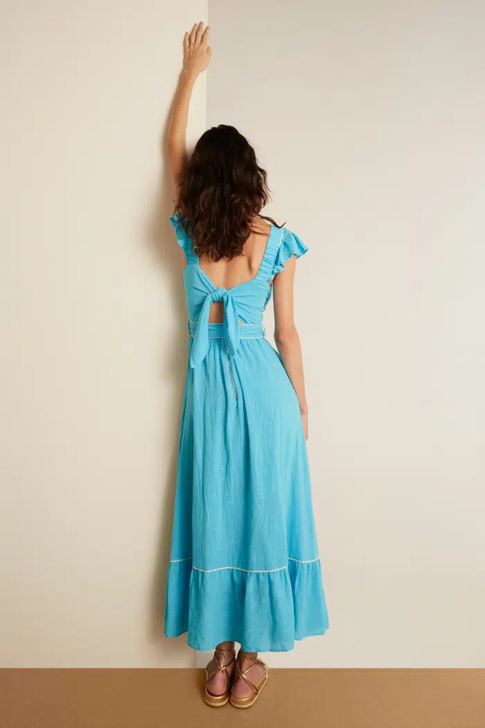 Esse Vestido Com Laços nas Costas Azul é um vestido que funciona em qualquer situação. Do Casual ao Fashion você conseguirá compor produções incríveis. Você terá um vestido super confortável, com comprimento ideal e detalhes que o deixam ainda mais especial. O elástico nas alças torna-o ainda mais prático na hora de vestir! Você precisa ter este vestido no seu closet !!!