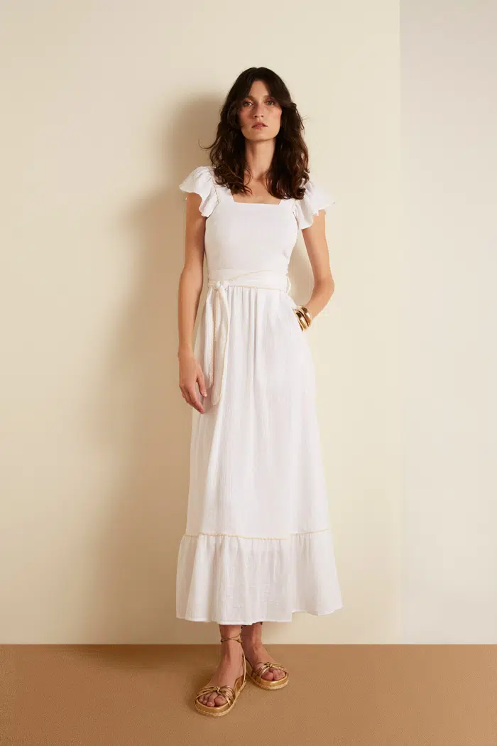 Siga corretamente as Instruções da etiqueta de cuidados e você terá um vestido por muitas Primaveras. COMPOSIÇÃO: 100% ALGODÃO